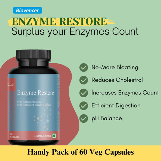 Biovencer Enzyme Restore | Provides Enzymes Found in Uncooked Food | Helps to Reduce Indigestion | Highly Concentrated | Have High Activity Level | Pack of 60 Veg CapsulesRegular price Rs. 1,450.00Regular priceUnit price perRs. 2,199.00Sale price Rs. 1,450.00Sale