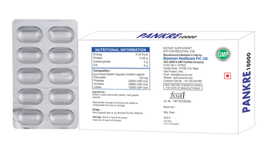 Bioven Pankre 10000 Capsules | Pancreatic Enzyme Deficiency | Pancreatic Enzyme Formula | Pack of 10Regular price Rs. 250.00Regular priceUnit price perRs. 290.00Sale price Rs. 250.00Sale