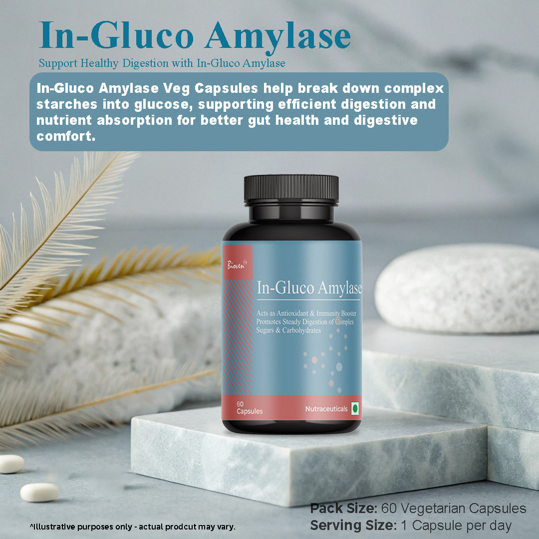 Biovencer In-Gluco Amylase Capsules are a specialized enzyme supplement designed to support healthy digestion and carbohydrate metabolism. Amylase is a key digestive enzyme that helps break down complex carbohydrates and starches into simple sugars, improving nutrient absorption and energy release. Regular use may support gut health, reduce bloating, and aid in managing digestive discomfort. Biovencer ensures premium quality with a high-strength formulation to promote smooth digestion, sustained energy, and overall wellness. Ideal for individuals seeking natural digestive support and better carbohydrate utilization.